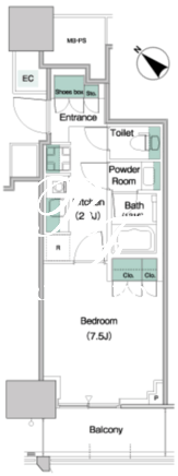 平米数 | 29.47m2 | 部屋詳細 | 洋室7.5帖/K2.6帖 |
