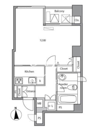 平米数 | 40.65m2 | 部屋詳細 | 洋室12.8帖/K2帖 |