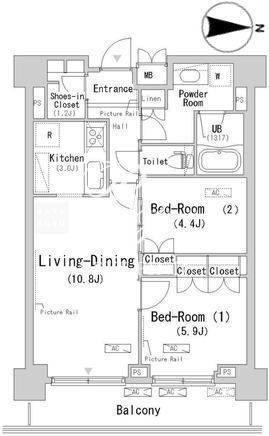 | 平米数 | 58.55m2 | 部屋詳細 | LDK13.8帖/洋室5.9帖/洋室4.4帖 |