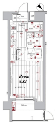 平米数 | 28.17m2 | 部屋詳細 | 洋室8.8帖/K2帖 |