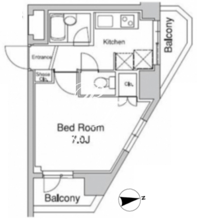 平米数 | 23.64m2 | 部屋詳細 | 洋室7帖/K2帖 |