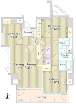 平米数 | 82.58m2 | 部屋詳細 | LDK16.4帖/洋室6.2帖/洋室4.8帖/洋室8.7帖 |