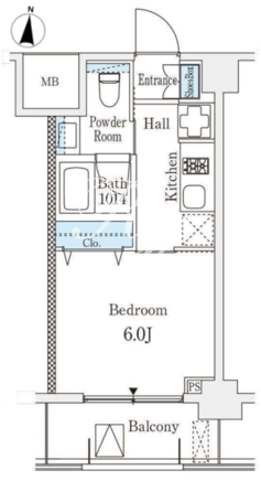 平米数 | 21.71m2 | 部屋詳細 | 洋室6帖/K2帖 |