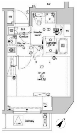 平米数 | 25.68m2 | 部屋詳細 | 洋室8.5帖/K2帖 |