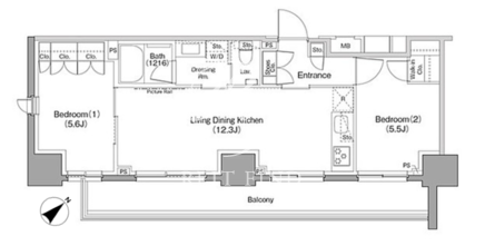 平米数 | 51.07m2 | 部屋詳細 | LDK12.3帖/洋室5.6帖/洋室5.5帖 |