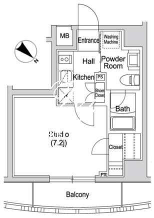 平米数 | 25.73m2 | 部屋詳細 | 洋室7.2帖/K2帖 |