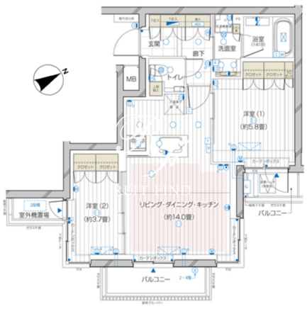 | 平米数 | 54.03m2 | 部屋詳細 | LDK14帖/洋室5.8帖/洋室3.7帖 |