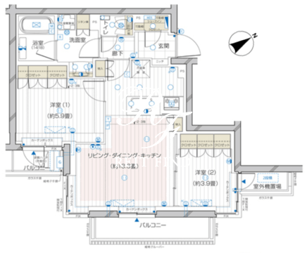 | 平米数 | 55.10m2 | 部屋詳細 | LDK13.3帖/洋室5.9帖/洋室3.9帖 |