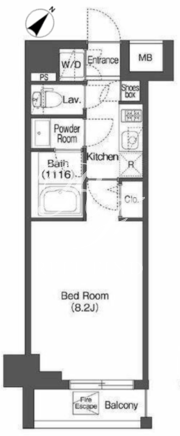 平米数 | 25.11m2 | 部屋詳細 | 洋室8.2帖/K2帖 |