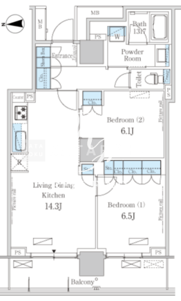 | 平米数 | 64.19m2 | 部屋詳細 | LDK14.3帖/洋室6.5帖/洋室6.1帖 |