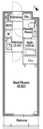 平米数 | 25.36m2 | 部屋詳細 | 洋室8.8帖/K2.4帖 |