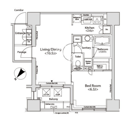 所在階/向き | 6階/北西 | 間取り | 1LDK+WIC |