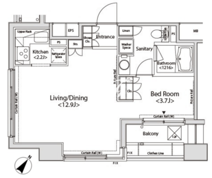所在階/向き | 12階/南東 | 間取り | 1LDK |