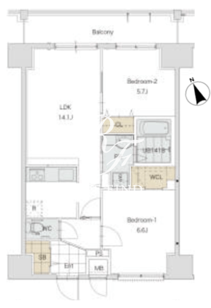 平米数 | 61.04m2 | 部屋詳細 | LDK14.1帖/洋室6.6帖/洋室5.7帖 |