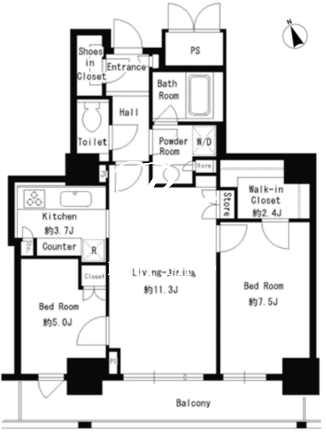 平米数 | 66.12m2 | 部屋詳細 | LDK15帖/洋室7.5帖/洋室5帖 |
