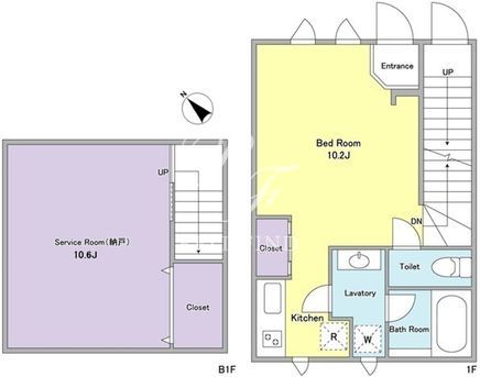 平米数 | 53.00m2 | 部屋詳細 | 洋室10.2帖/サービスルーム10.6帖 |