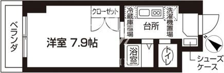 平米数 | 22.77m2 | 部屋詳細 | 洋室7.9帖/K2帖 |