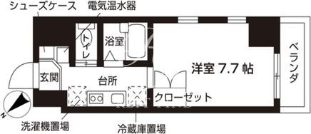 平米数 | 23.14m2 | 部屋詳細 | 洋室7.7帖/K2帖 |