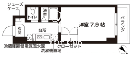 平米数 | 22.77m2 | 部屋詳細 | 洋室7.9帖/K2帖 |