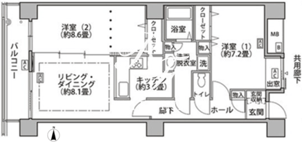 所在階/向き | 7階/西 | 間取り | 2LDK |