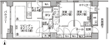 平米数 | 65.51m2 | 部屋詳細 | LDK13.9帖/洋室4.7帖/洋室4.7帖 |