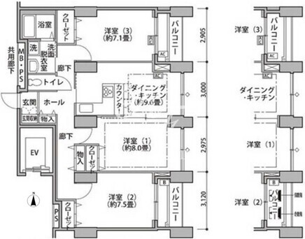 平米数 | 84.14m2 | 部屋詳細 | DK9.6帖/洋室8帖/洋室7.5帖/洋室7.1帖 |
