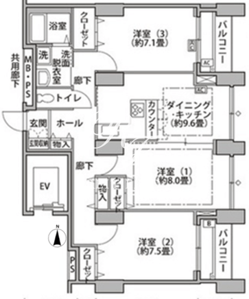 平米数 | 84.05m2 | 部屋詳細 | DK9.6帖/洋室8帖/洋室7.5帖/洋室7.1帖 |