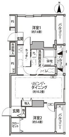 平米数 | 61.10m2 | 部屋詳細 | LDK10.2帖/洋室7.6帖/洋室5.6帖 |