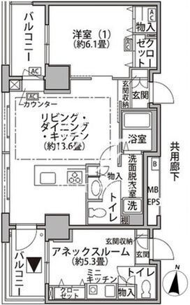 平米数 | 62.87m2 | 部屋詳細 | LDK13.6帖/洋室6.1帖/その他5.3帖 |