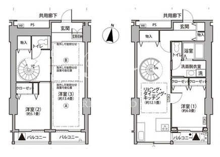 平米数 | 105.08m2 | 部屋詳細 | DK12.1帖/洋室13.4帖/洋室6帖/洋室5.1帖 |