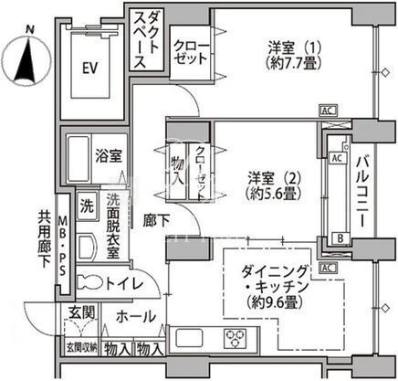 | 平米数 | 66.07m2 | 部屋詳細 | DK9.6帖/洋室7.7帖/洋室5.6帖 |