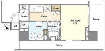 平米数 | 25.91m2 | 部屋詳細 | 洋室6.3帖/K2帖 |