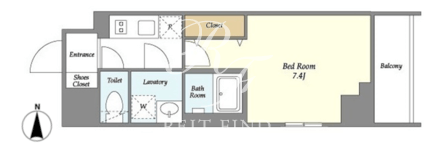 平米数 | 25.62m2 | 部屋詳細 | 洋室7.4帖/K2帖 |