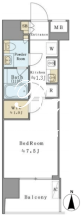 平米数 | 26.16m2 | 部屋詳細 | 洋室7.5帖/K1.3帖 |