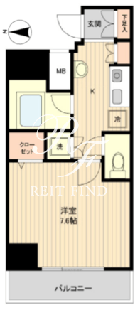 平米数 | 24.65m2 | 部屋詳細 | 洋室7.6帖/K2帖 |