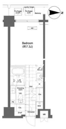 平米数 | 25.38m2 | 部屋詳細 | 洋室7.3帖/K2帖 |