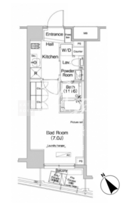 | 平米数 | 23.69m2 | 部屋詳細 | 洋室7帖/K2帖 |