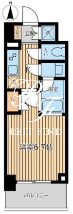 | 平米数 | 22.78m2 | 部屋詳細 | 洋室6.7帖/K2帖 |