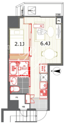 平米数 | 24.53m2 | 部屋詳細 | DK6.4帖/洋室2.1帖 |
