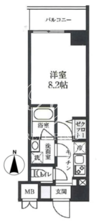 平米数 | 25.81m2 | 部屋詳細 | 洋室8.2帖/K2帖 |