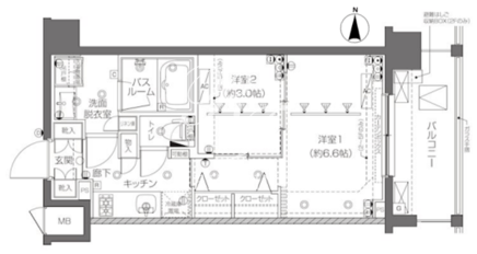 平米数 | 30.42m2 | 部屋詳細 | 洋室6.6帖/洋室3帖/K2帖 |