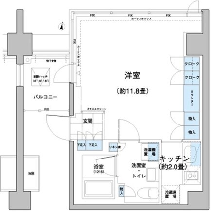 平米数 | 34.78m2 | 部屋詳細 | 洋室11.8帖/K2帖 |