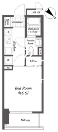 平米数 | 23.12m2 | 部屋詳細 | 洋室6.6帖/K2帖 |