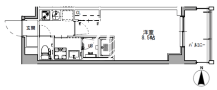 平米数 | 25.75m2 | 部屋詳細 | 洋室8.5帖/K2帖 |