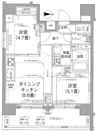 平米数 | 45.09m2 | 部屋詳細 | DK8.6帖/洋室5.1帖/洋室4.7帖 |
