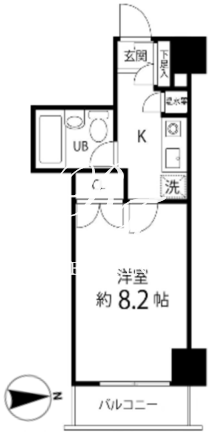 平米数 | 26.35m2 | 部屋詳細 | 洋室8.2帖/K2帖 |