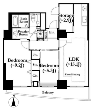 平米数 | 78.16m2 | 部屋詳細 | LDK15.1帖/洋室9.2帖/洋室5.3帖/その他2.9帖 |