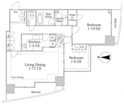 所在階/向き | 34階/西 | 間取り | 2LDK+WIC |
