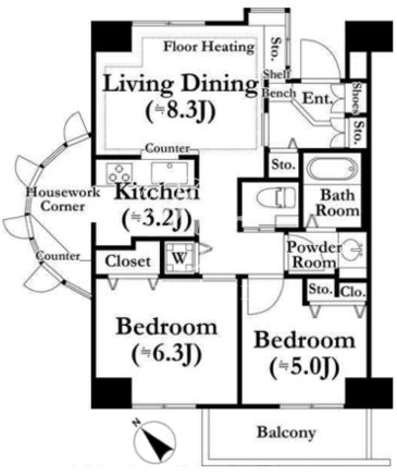 所在階/向き | 5階/南西 | 間取り | 2LDK |
