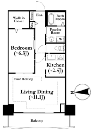 所在階/向き | 13階/西 | 間取り | 1LDK+WIC |
